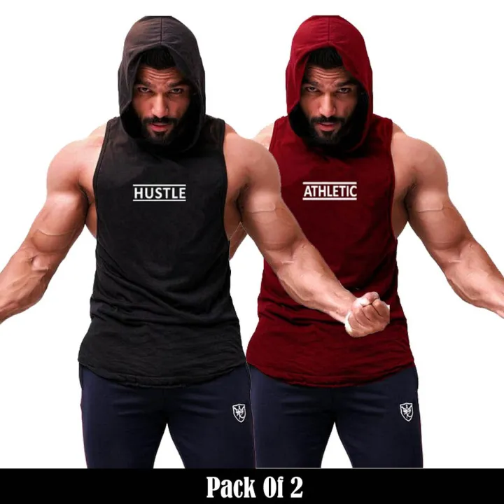 The Vintage Clothing Pack of 2 sando tanks for men men's fitness gym muscle body building sleeveless hoodies tank top gym sando for men