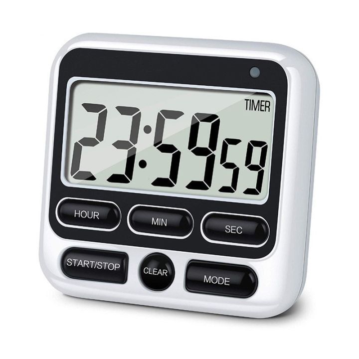 Timer with alarm clock, large screen, kitchen timer, adjustable alarm switch and power switch