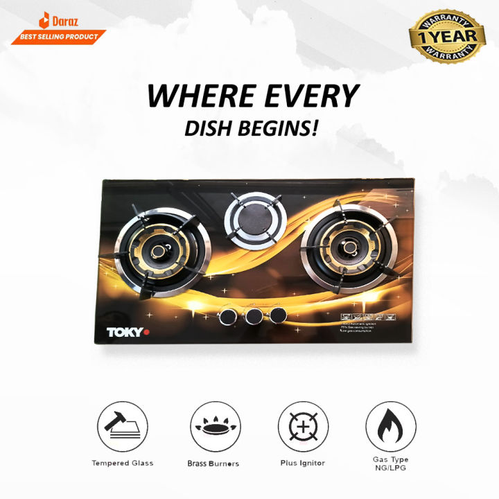 TOKYO TK-1G Gas Stove - Elegant Brass Burner with Tempered Glass - Automatic Ignition (BUILT-IN HOB) (NG OR LPG) - 1-Year Warranty
