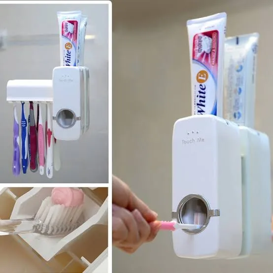 Toothpaste Dispenser with Wall Mounted Toothbrush Holder