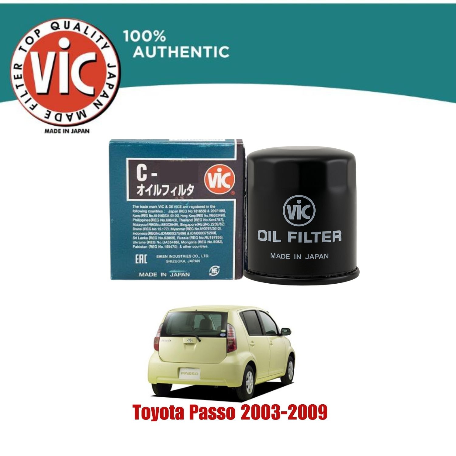 TOYOTA PASSO 2003-2009 VIC OIL FILTER MADE IN JAPAN