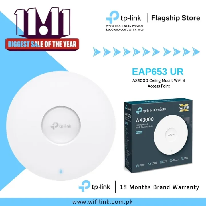 TP-Link Access Point EAP653 UR AX3000 Ceiling Mount WiFi 6 Access Point- 18 Months Brand Warranty