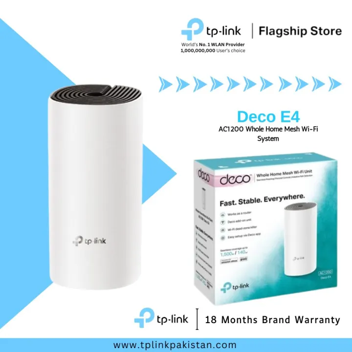 TP-Link Wi-Fi Deco E4 ( 1 Pack / 2 Pack / 3 Pack ) AC1200 Dual Band Whole Home Mesh Wi-Fi System - 18 Months Brand Warranty