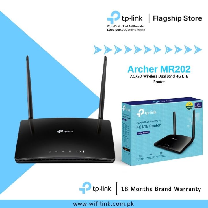 TP-Link Wi-Fi Sim Router Archer MR202 AC750 Wireless Dual Band 4G LTE Router - PTA Approved - 18 Months Brand Warranty