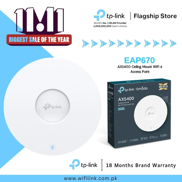 TP-Link WiFi 6 Access Point Ceiling Mount EAP670 AX5400 Ceiling Mount WiFi 6 Access Point - 18 Months Brand Warranty