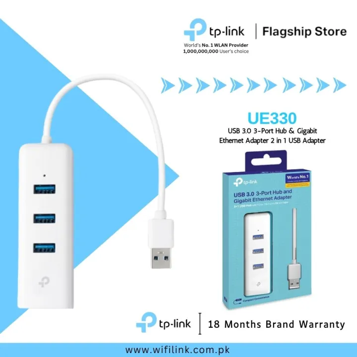 TP-Link USB 3.0 to RJ45 & 3-Port USB 3.0 Hub UE330 USB 3.0 3-Port Hub & Gigabit Ethernet Adapter 2 in 1 USB Adapter 10/100/1000 Mbps - 18 Months Brand Warranty