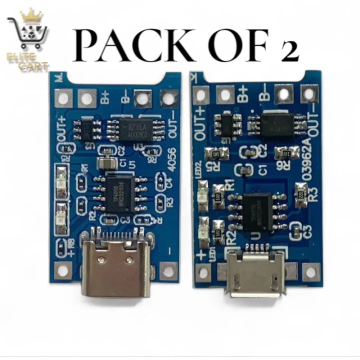 TP4056 Charging Module | Type-C + Micro USB 5V 1A Lithium Battery Charger Board with Protection | 18650 Li-ion 3.7V Cell BMS Fast Charging Circuit | DIY Power Bank Solar LED Light Robotics IoT Projects Battery Management Module in Pakistan