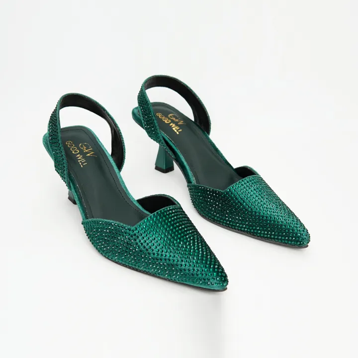 Trending High heel sandals women's shoes green rhinestone wedding toe mules