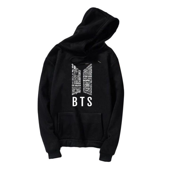 Trendy BTS SYMBOL LOGO TAGLINE Tag Print Kangaroo Hoodie in BLACK colour Full sleeves with Pocket Drawstring Casual Pullover Hodie Clothing Long Sleeves Export Quality Huddie Winter Wear breathable Smart Fit Hoody For Women Girls and Boys/Men