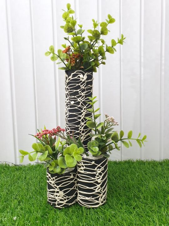 Tri-cone Vase / brown - 3 in 1 Table Vase made of wood with beautiful rose flowers - Beautiful Home Decoration Piece - Size 12 Inch