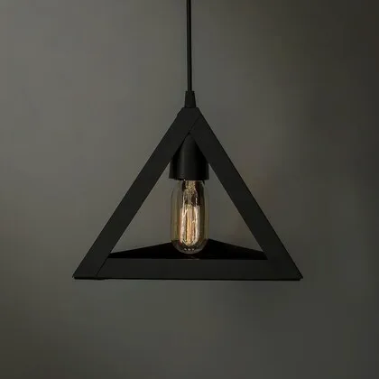 Triangle Lamp Indoor Unique Geometric Vintage Styled Bulb Fixture Hanging Ceiling Warm Shade Black Aluminum Body Triangle Shaped Pendant Light With Bulb
