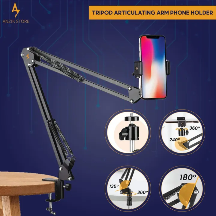 Tripod Articulating Arm Phone Holder, Phone Holder, Phone Clip Holder Clamp for Desk, Mount Flexible 360° Rotation, Long Arm Bracket for Universal Phone Stand Holder By Anzik Store