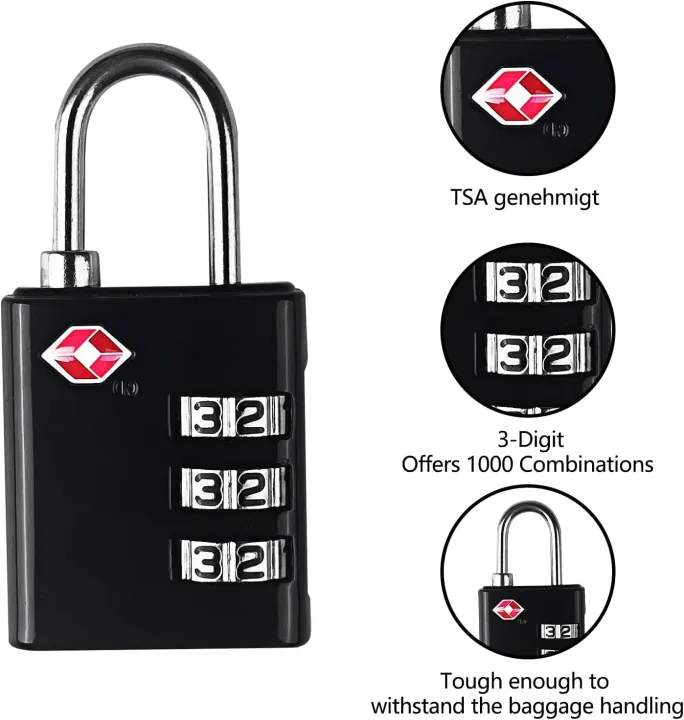 TSA Accepted 3-Digit Combination Lock for Suitcase & Baggage (Black)