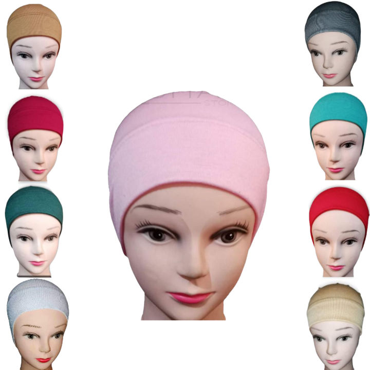 Tube bend inner cap for hijab eshaa store /black Meroon Red Skin Gray White Green Pink