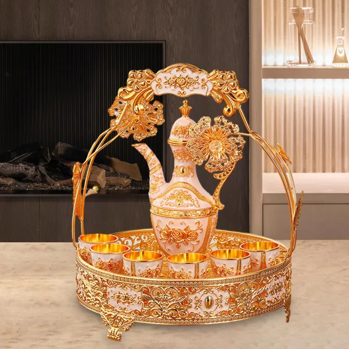 Turkish Coffee Set with Pot Tray and 6 Cups Water Serving Set Tea Service Set