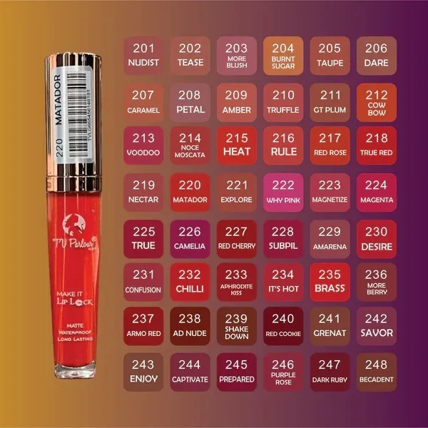 TV Parlour Lipstick Super Lasting Matte Lipgloss Waterproof liquid Lip Gloss