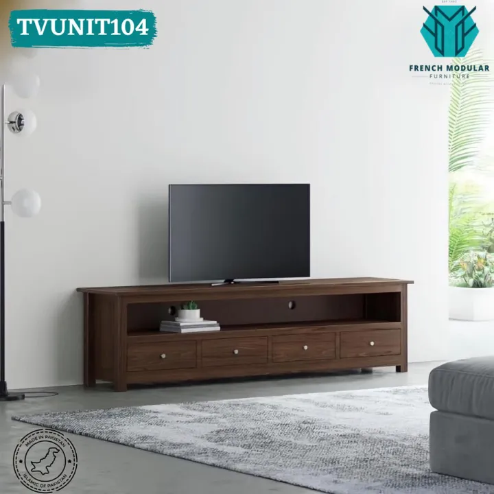 TVUNIT104 - Sheesham Wood Dark Brown Polish Finish TV Console Entertainment Unit Living Room Table TV Bedroom Furniture Desk