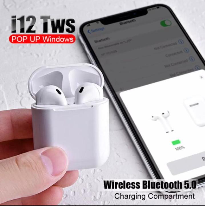 i12 TWS Airpods | True Wireless Bluetooth Earbuds | Deep Bass | Touch Controls | Built-in Mic | Compatible with All Devices.
