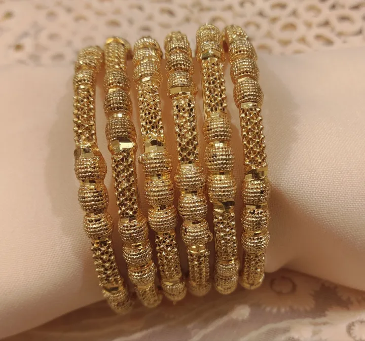 نیا انداز نیا اسٹائل 6 پیس کا سیٹ بیگل گولڈ کا پانی چڑھا Ûوا درآمد Ø´Ø¯Û Ø¨Ø±Ø§Ù†ÚˆÚˆ جیولری Ú©Û’ ساتھ 22 قیراط کلوری انڈین دیسین