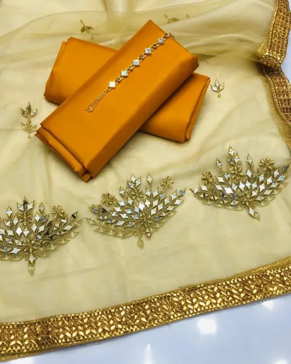 نیا خواتین کا Ùیشن Ùینسی شرٹ اور ٹراؤزر 4 بارڈر سے Ú©Ù… انڈین اور آئینے Ú©Û’ کام Ú©Û’ ساتھ Ùینسی Ø¯ÙˆÙ¾Ù¹Û Ù¾Ûننے Ú©Û’ لئے تیار-3 پیس بغیر سلا Ûوا لباس