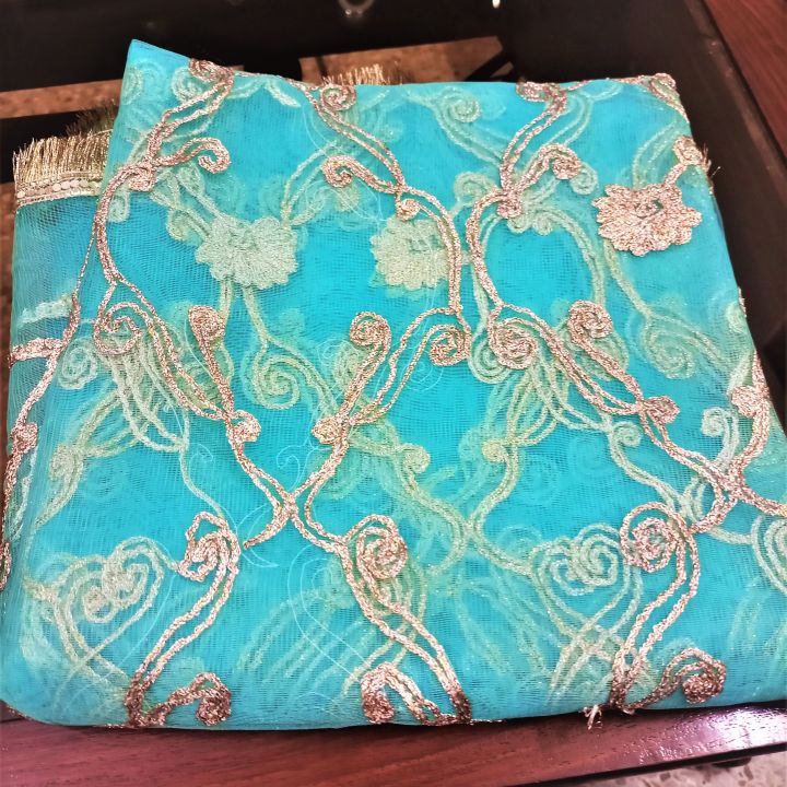 اسکائی بلیو Ø¯ÙˆÙ¾Ù¹Û Ù†ÛŒÙ¹ اسٹ٠انڈین لیس کرن Ø³Ù†ÛØ±Ø§ گوٹا Ø¯ÙˆÙ¾Ù¹Û Ù¾Ø§Ø±Ù¹ÛŒ میں Ù¾Ûننے والا Ù…Ûندی میو لباس دوپٹÛ