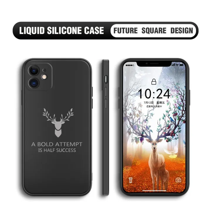 UCUC for iPhone 11 Case Flower Deer Head Doodle Cover Thin Soft Luxury Square Liquid Silicone Phone Case