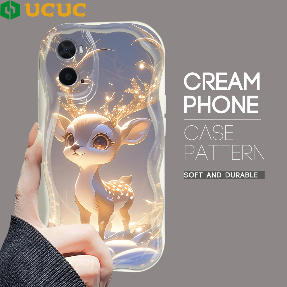 UCUC for OPPO A36 A76 Back Cover Mini Deer Cream Texture Wavy Edge Soft Silicone Phone Case