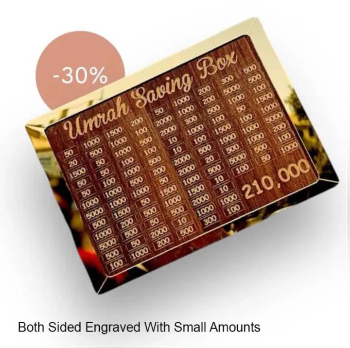 Umrah Saving Box - 1 Lakh Savings Challenge Wooden Money Box – Cash & Coin Bank with Lock, Savings Tracker & Counter – Saving Box For Moblie and Bike and Umrah – Secure Cash Vault for Financial Goals"
