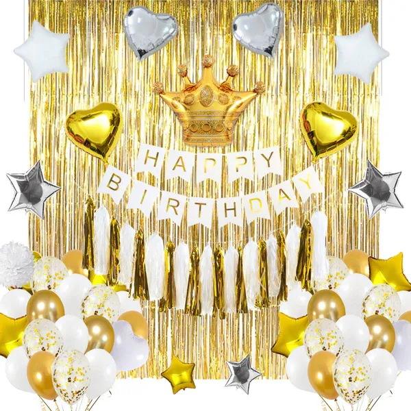 Unik 141 pcs White and Gold happy birthday decoration set happy birthday banner happy birthday balloons birthday decoration birthday decoration items party decorations birthday accessories theme