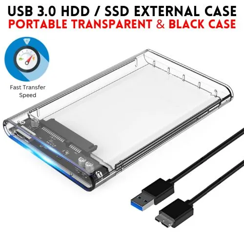 USB 3.0 Portable HDD SSD 2.5" Hardrive External Case ( Black & Transparent ) - 2.5" Hard Drive Case 5Gbps High Speed Fast Data Transfer (ONLY CASE)
