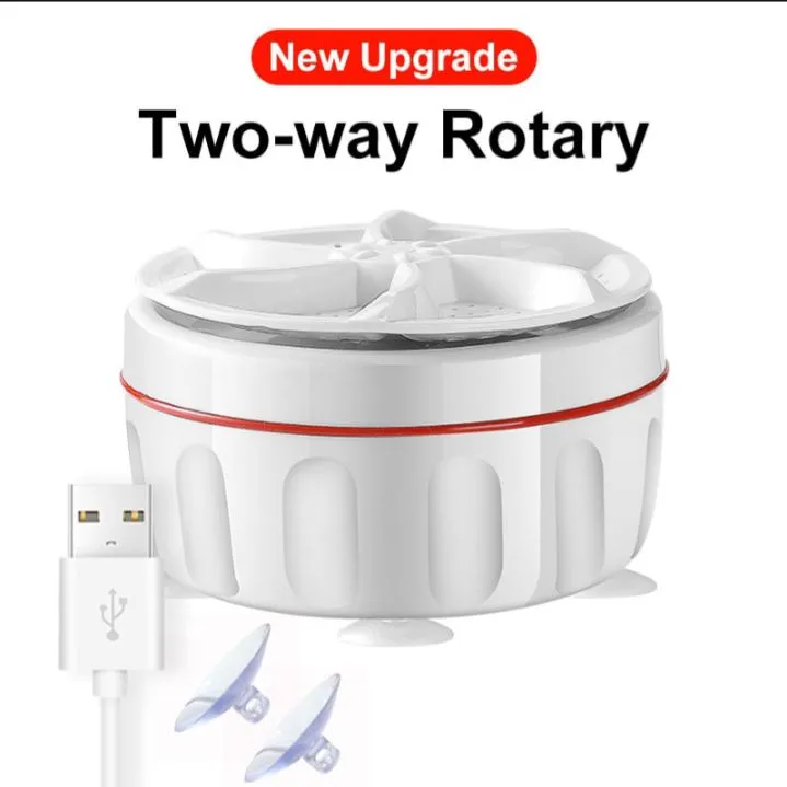 USB mini washing machine's portability and versatility. Incorporate images of socks, underwear, and dishes to demonstrate its multi-functional use