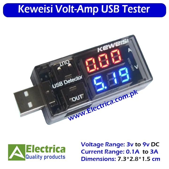 USB Tester Dual USB Ampere Voltage Time & mAh Charger Detector Double USB for Output 3-9V 0.1-3A USB Tester by Electrica