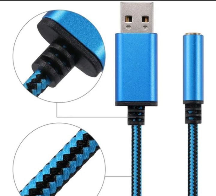 USB to 3.5mm Headphone Jack Audio Adapter,External Stereo Sound Card for PC, Laptop,for ,for Etc (0.6 Feet,Blue)