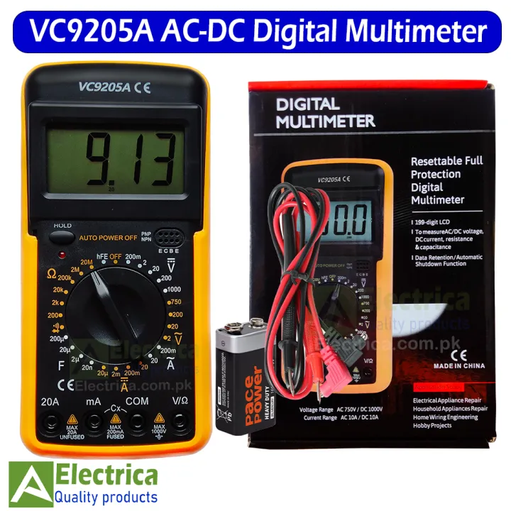 VC9205A AC/DC Digital Multimeter Tester Manual Range Voltage Meter TRMS Hz Ohm Transistor Tester Electrician Tool by Electrica