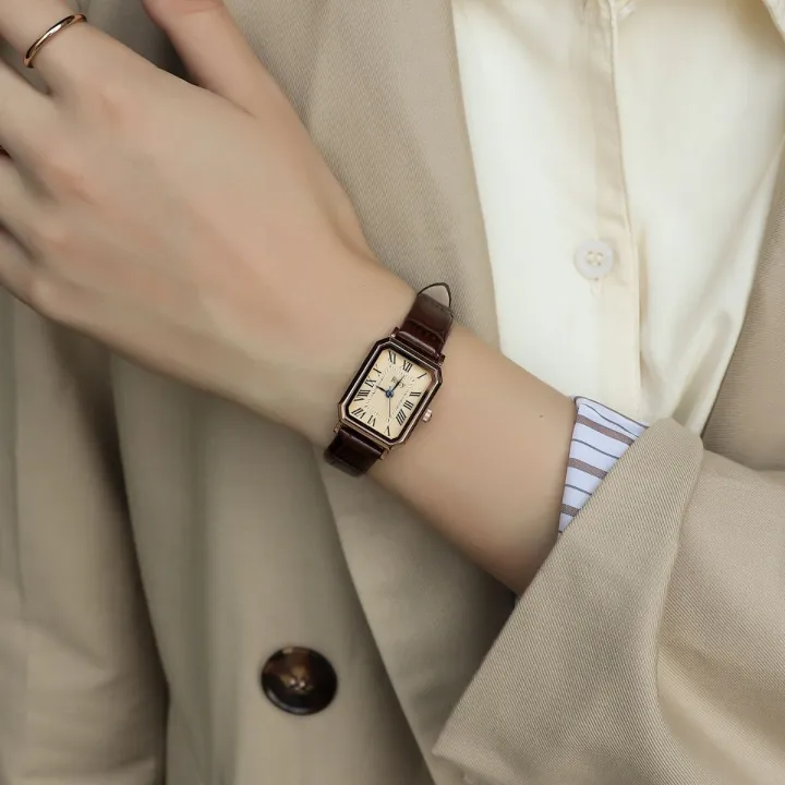 Vintage%20Small%20Dial%20Women's%20Watch%20Niche%20High-grade%20Leather%20Small%20Square%20Watch%20Light%20Luxury%20Temperament%20Quartz%20Watch%20-%20Image%201