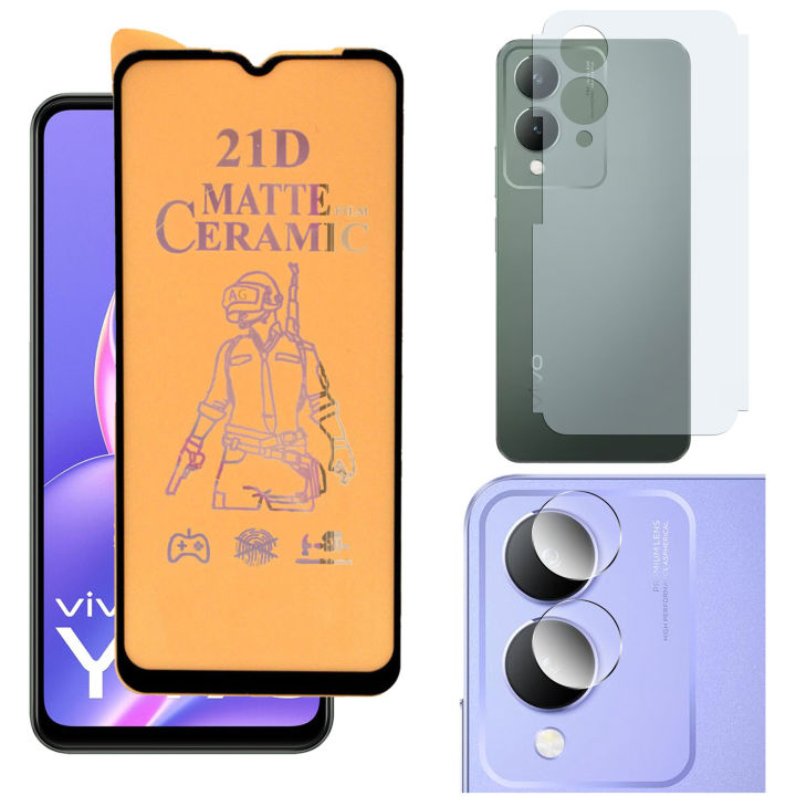 Vivo Y17s Matte Finish Ceramic Protector Flexible Glass + Back Matte Protector Soft Skin Sheet Soft Film Protector + Back Camera 9H Gorilla Flexible Protector For Vivo Y17s