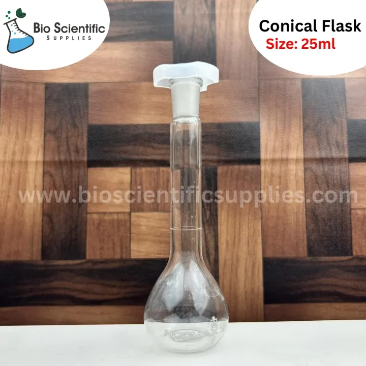 Volumetric Flask, 25ml – Clear-Fitted with Polypropylene Stopper - Class A, Tolerance ±0.10 ml - White Graduation Mark - Borosilicate Glass –NORMAX