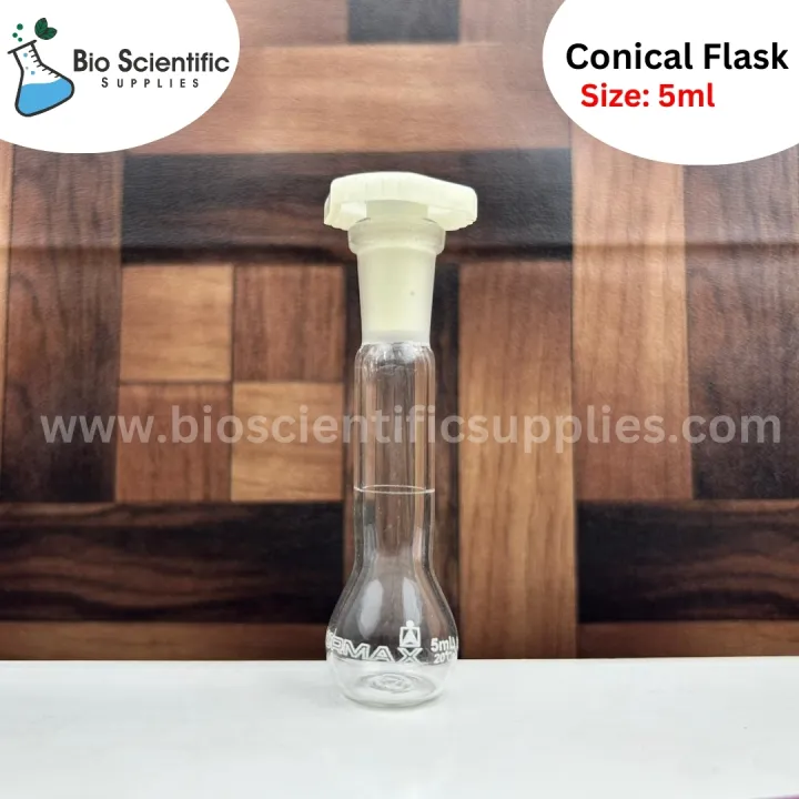 Volumetric Flask, 5ml – Clear-Fitted with Polypropylene Stopper - Class A, Tolerance ±0.10 ml - White Graduation Mark - Borosilicate Glass –NORMAX