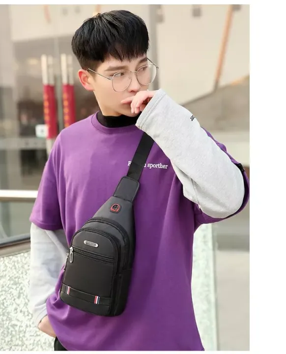Waist Bag Men Waterproof Sling Bag Pack Waist Bag Large Capacity Hip Belt Cross body Shoulder Pouch Purse Men Chest Bag Side Bag Fanny Bag with Headphone Jack- For Men And Boys only Black color is Available