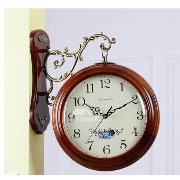 Wall Clock Outdoor Station Garden Hallway Double Sided Wall Mount Clock Retro