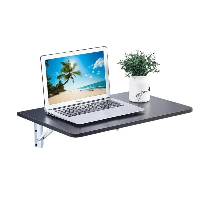 Wall Mounted Folding Laptop Table Floating for Bedroom Kitchen Space Saving, Foldable Wooden Modern Computer Desk Workstation Small Desk Foldable with Metal Support (Black)