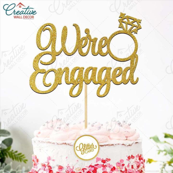 We're Engaged Cake Topper for Cake Decoration, Wedding Anniversary & Engagement Party Celebration Toppers in Gold