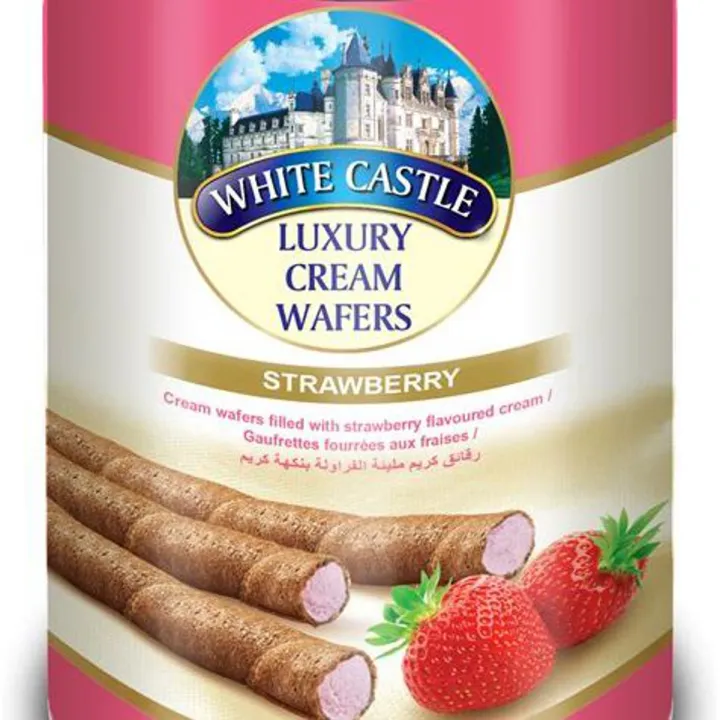 White Castle - Luxury Cream Wafers - Roll Sticks - Strawberry Flavoured - 300g