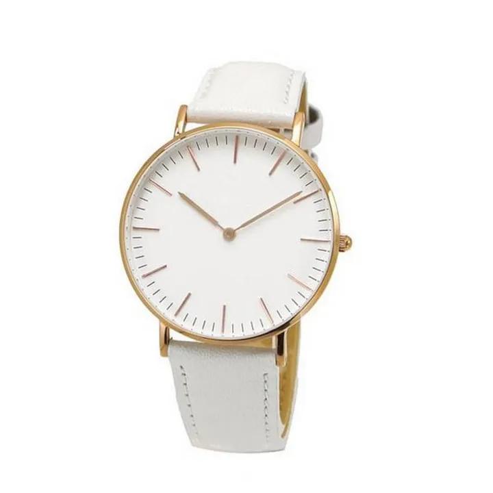 White Dial Classic Watch with Leather Strap
