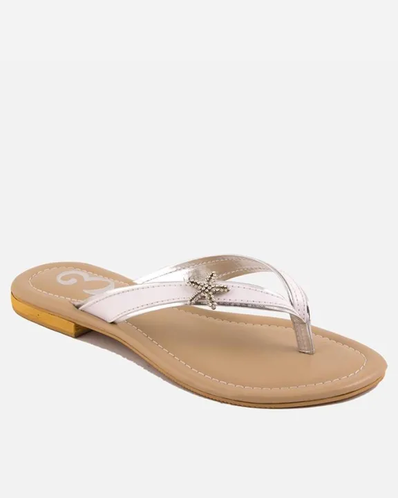 White Faux Leather Starfish V-Strap For Women - STA-02