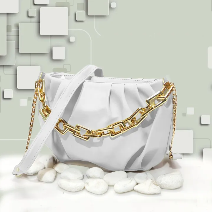 White - Hand bags for girls with Stylish Golden chain And Long strap