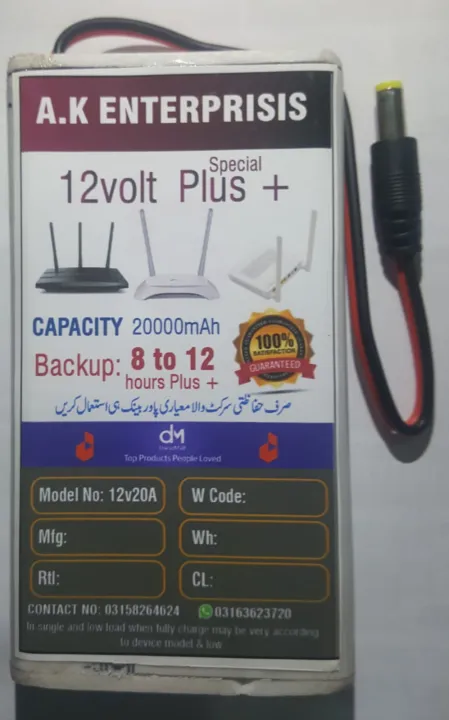 Wifi Router Power Bank 12 Volts UPS Technology 4 to 6 Hours Gurenteed Backup Tp link-Tenda-PTCL Fiber Bas Router 1 Week Warranty