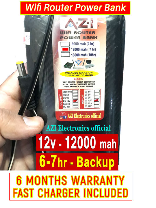 WiFi Router Power Bank 12v Volts UPS Technology | 8000 Mah | 3 to 4 hours Gauranteed Backup | Tp Link-Tenda-PTCL | Huawei | Fiber Base Router for 12Volt Wifi Routers | 6 Months Warranty