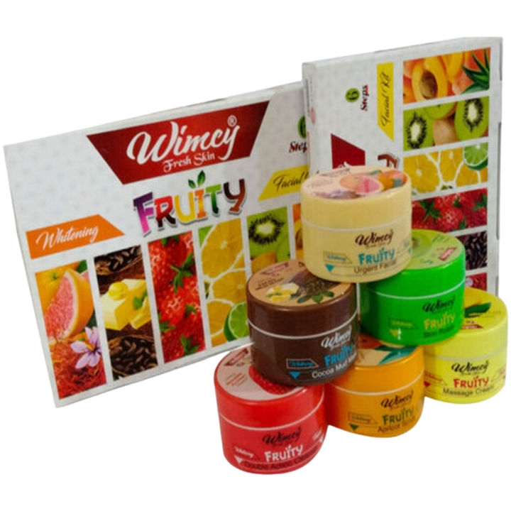 Wimcy Fruit Facial 100ml - Export Quality Product - Cosmetic Items - Quality Cosmetic brand The facial kit contains 6 products that are all a must have for a glowing and healthy skin. This facial kit contains pomegranate facewash, apricot scrub,cucumber