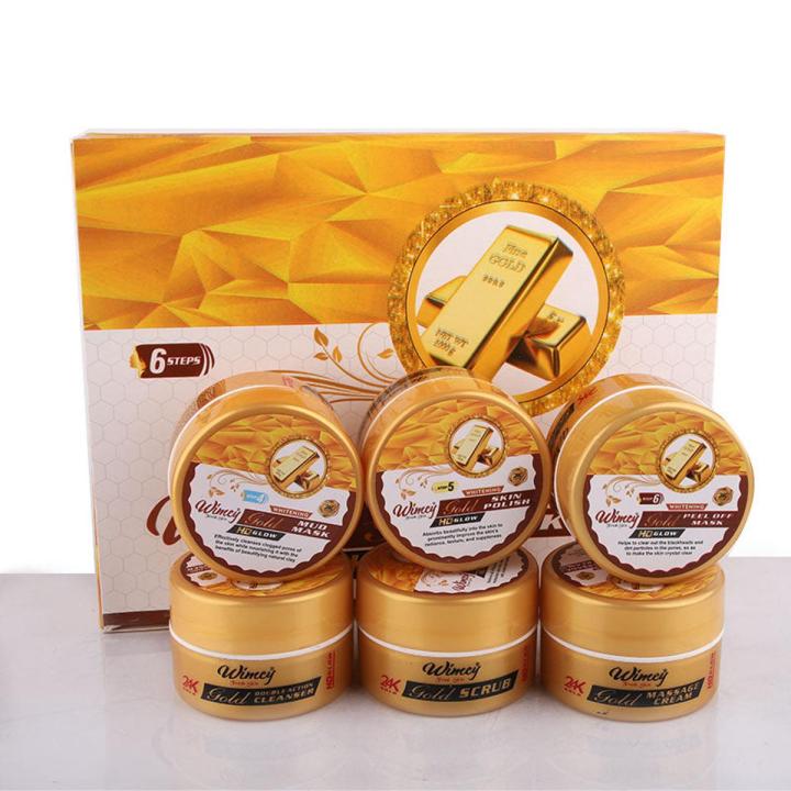 Wimcy Whitening Gold Facial Kit HD Glow 300ML Gold Scrub Gold Massage Cream Gold Peel Off Mask Gold Skin Polish Gold Double Action Cleanser Gold Mud Mask